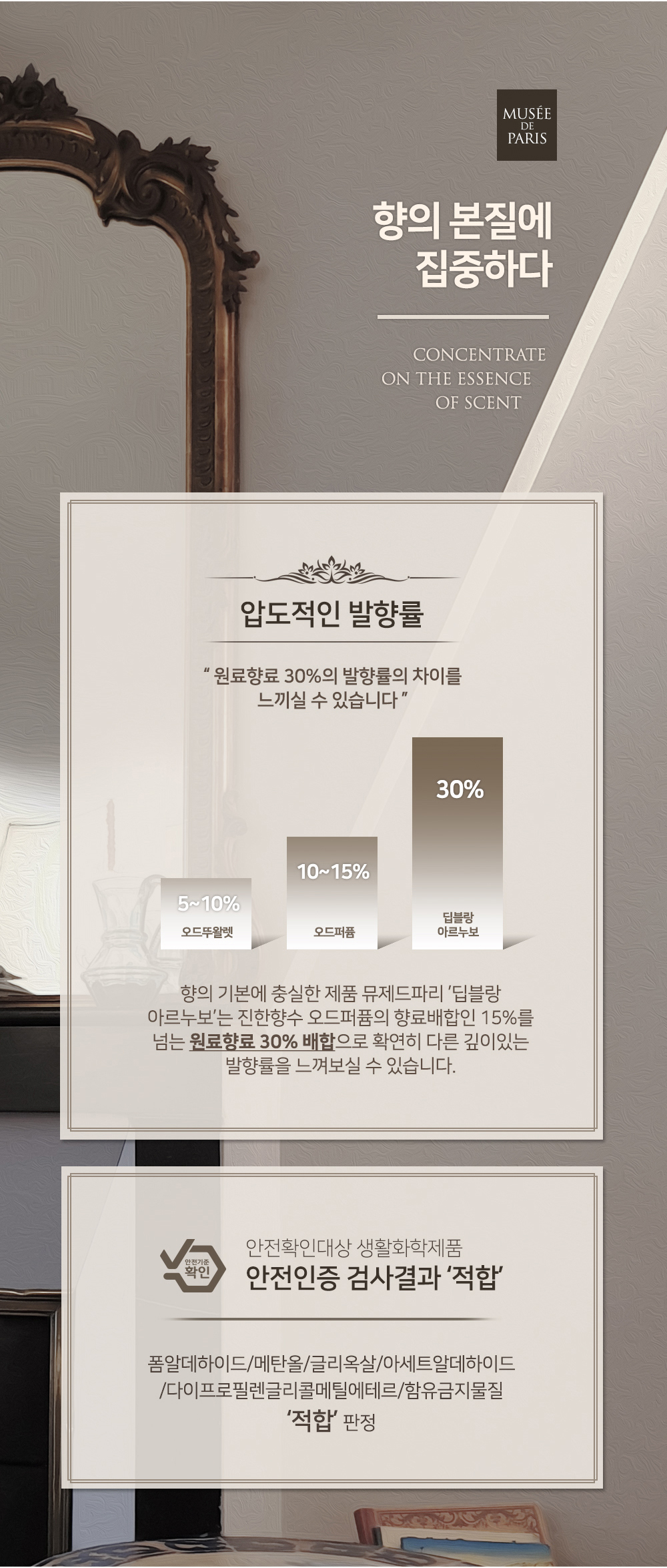 화장실에서 막 사용할 향은 저렴한 상품을 구입하더라도 고급스럽고 중요한 장소에 사용할 향은 꼭 좋은 것을 고집하는데 파리의 향기를 느낄 수 있다는 뮤제드 파리는 고급지고 말로 설명하기 어렵지만 만족스러운 디퓨저로 추천합니다
